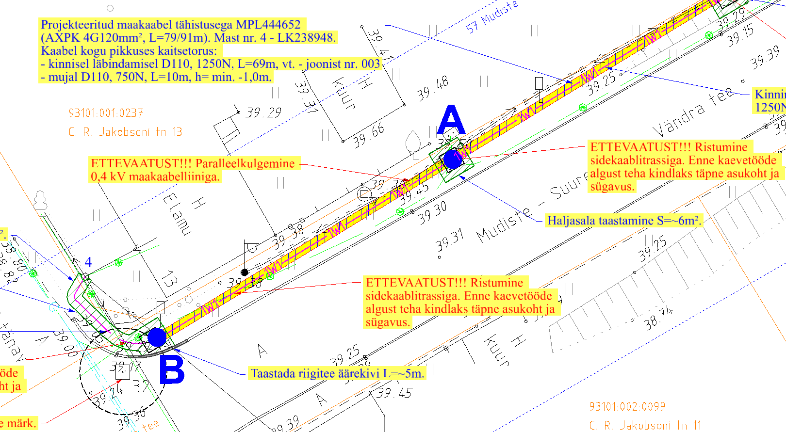 Ehitusprojektis oli ette nähtud maakaabli paigaldussügavuseks 57 Mudiste - Suure-Jaani - Vändra tee kinnistul min. 1,5m.