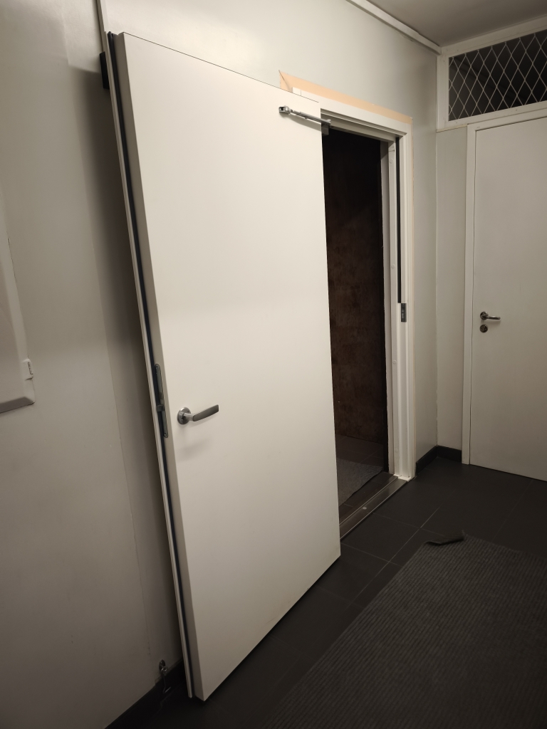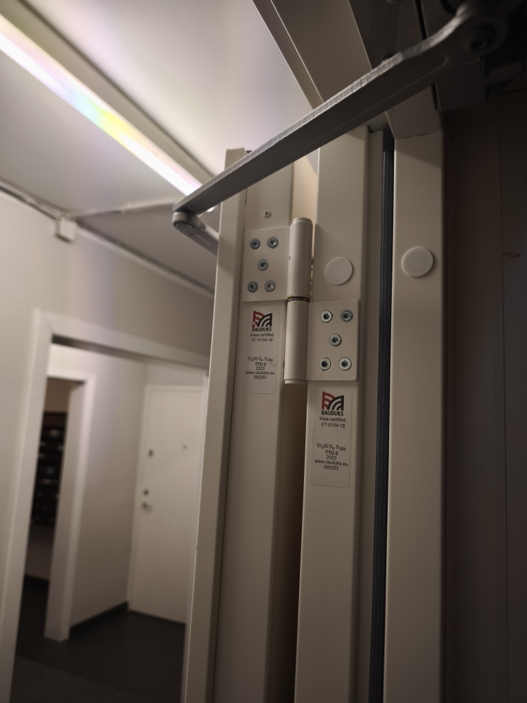 1.punkt 1 -1.korruse liftihoone ja koridori vahele on paigaldatud nõuetekohane uks.Lisame fotod.