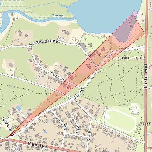 Järve tn, Käo tee, maantee nr 22160 Elva - Rannu km-d: 0,43 - 2,51, Aia tn, Elva linn,