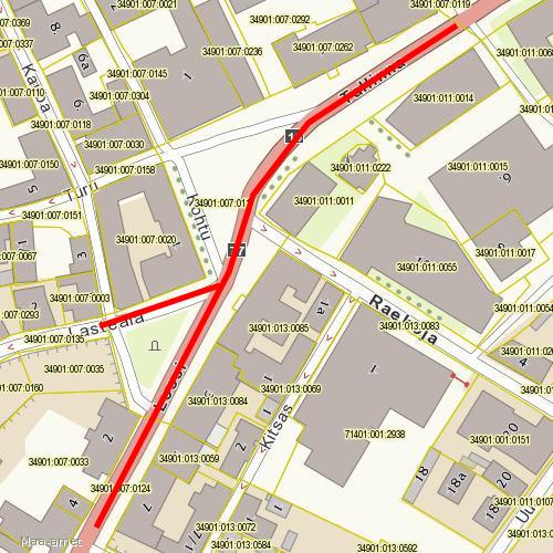 ristmikust kuni Raua tänava ristmikuni ja Lasteaia tänava lõik Lossi tänava ristmikust kuni