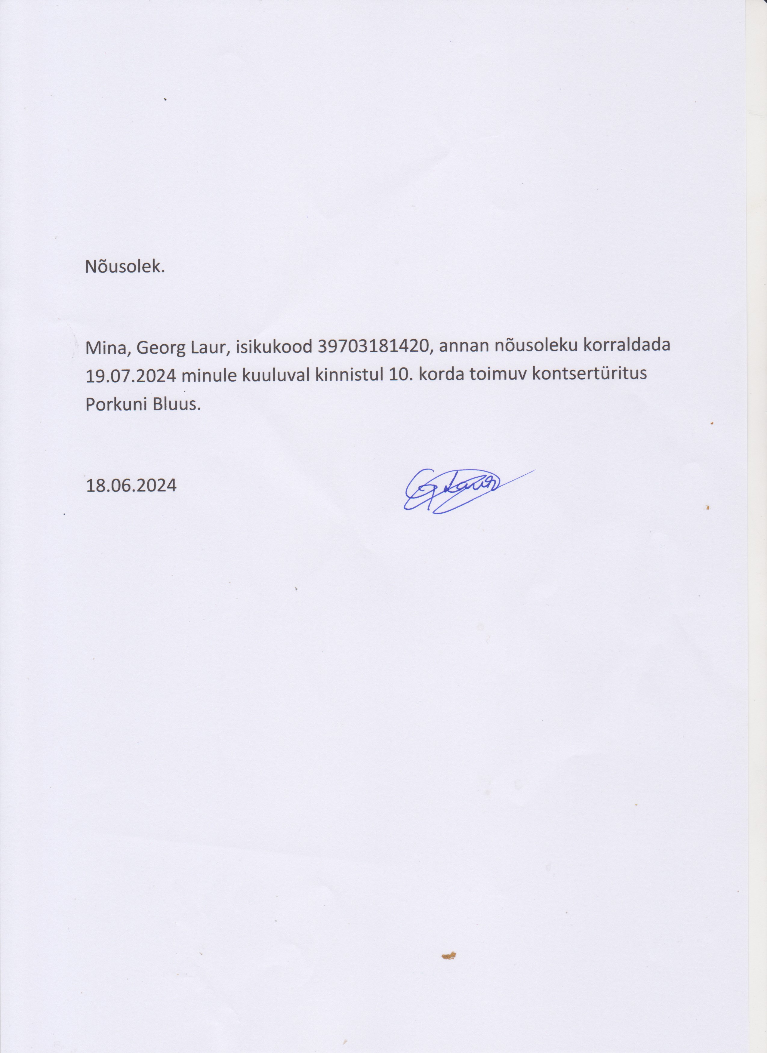 Teema: Porkuni Bluusi korraldamise taotlus kooskõlastamiseks Manused: Porkuni Bluusi 2024 korraldamise taotlus.asice