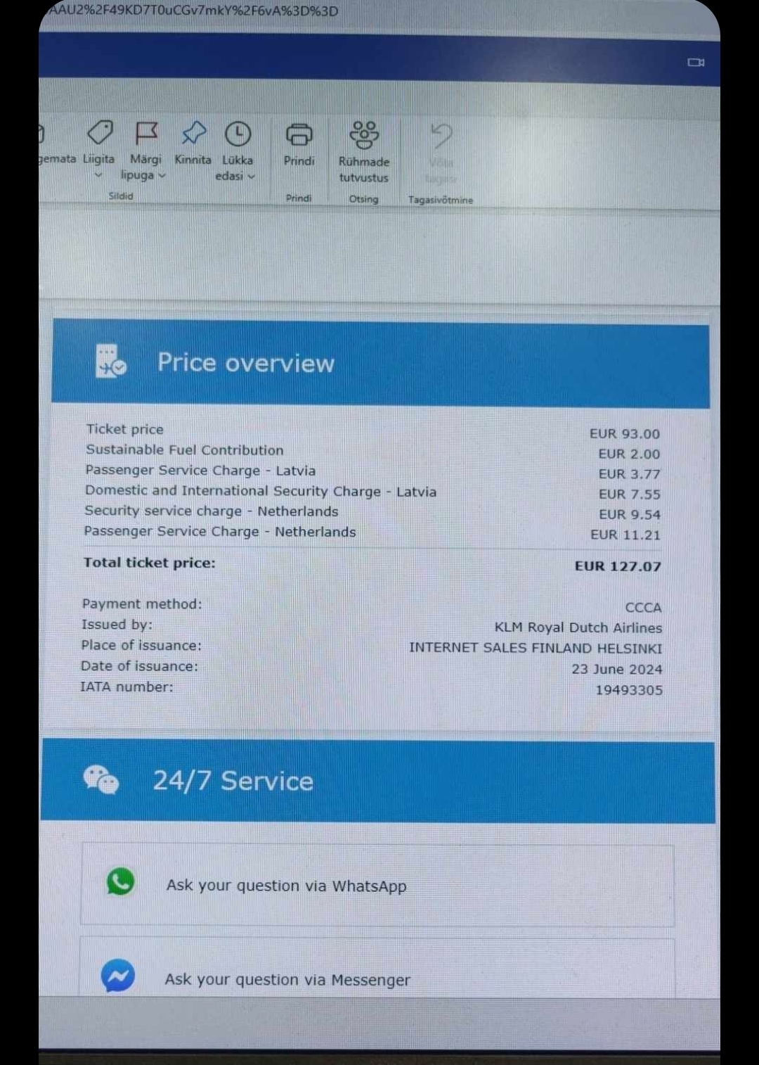12/06/2024 0742112662234 MIKK KRISTJAN MR 25/07/2024 International Air Ticket