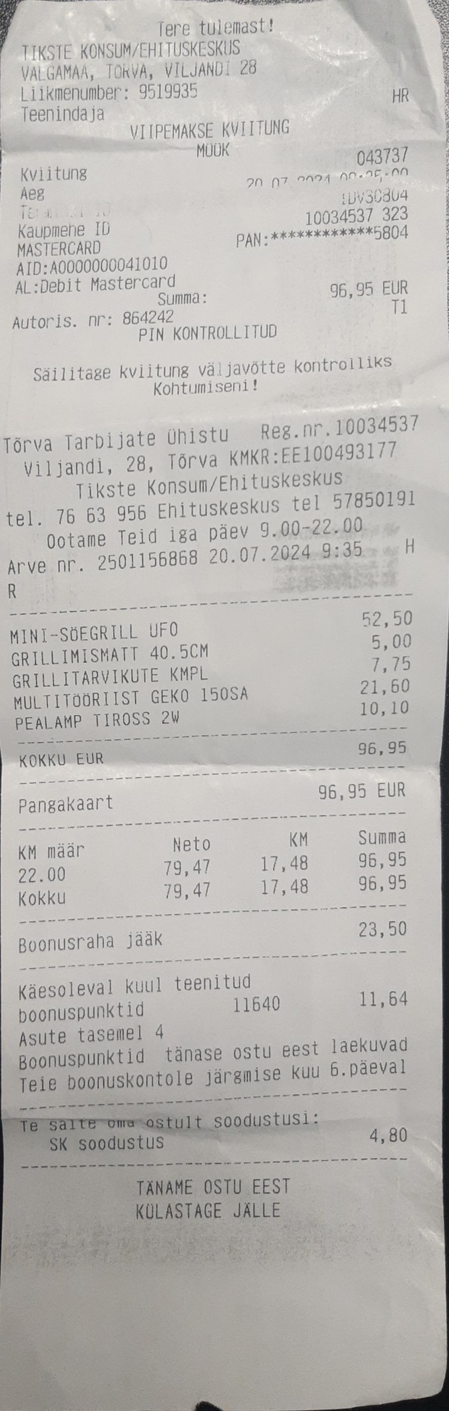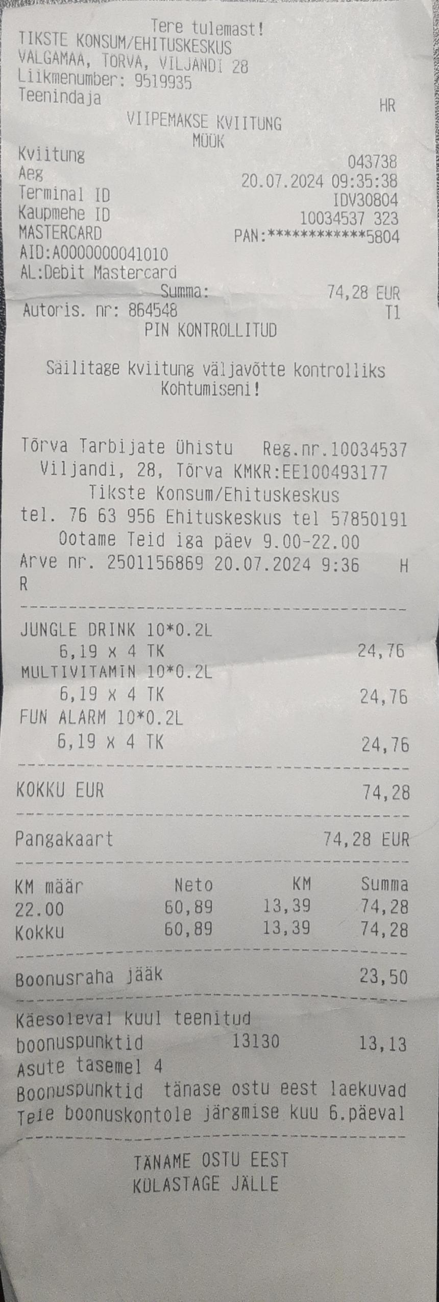Kuupäev: 28.07.2024 Maksetähtaeg: 11.08.2024