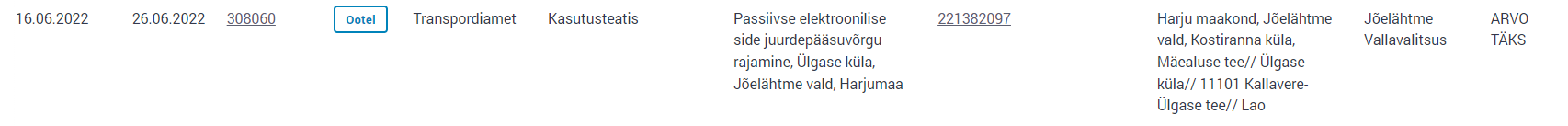 | Vastutaja | Ave Talli (Transpordiamet, Users, Taristu haldamise teenistus, Projekteerimise osakond, Taristu kooskõlastuste üksus) |