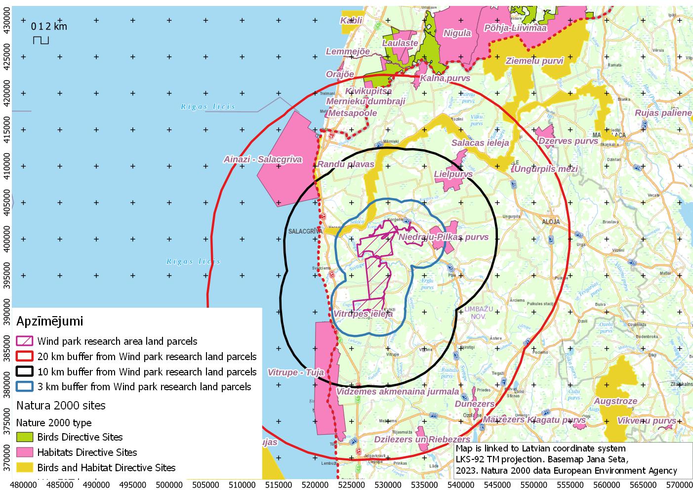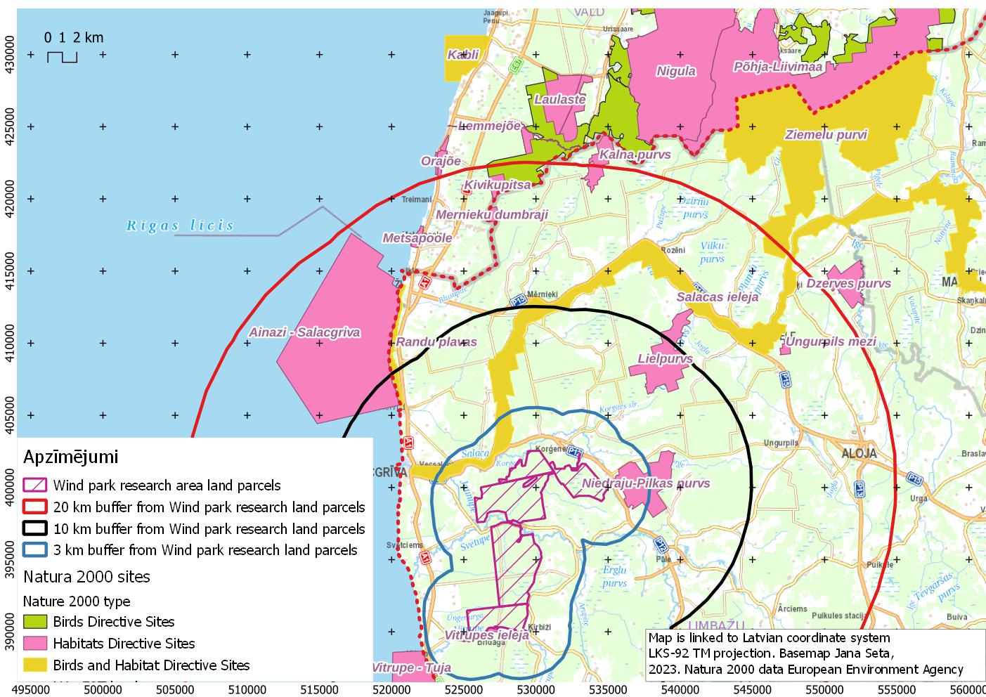 km from the Salacgrīva. The total area of the wind farm construction area is 1894 ha.
