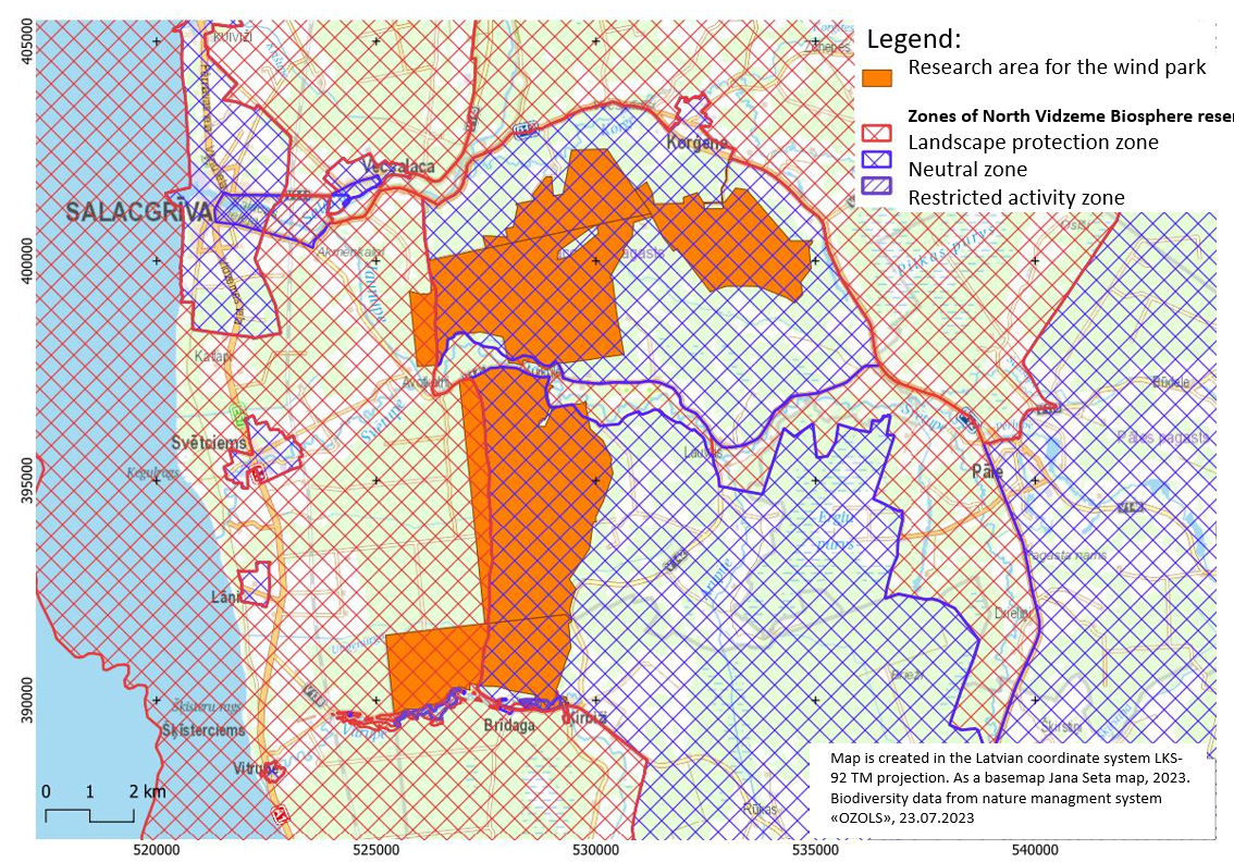 According to the spatial plan for municipality of Limbaži, the construction territory of the wind