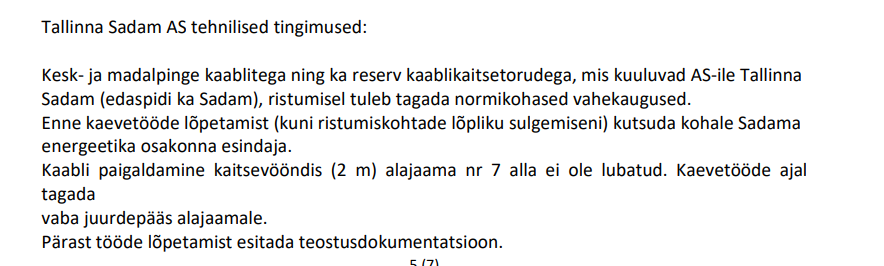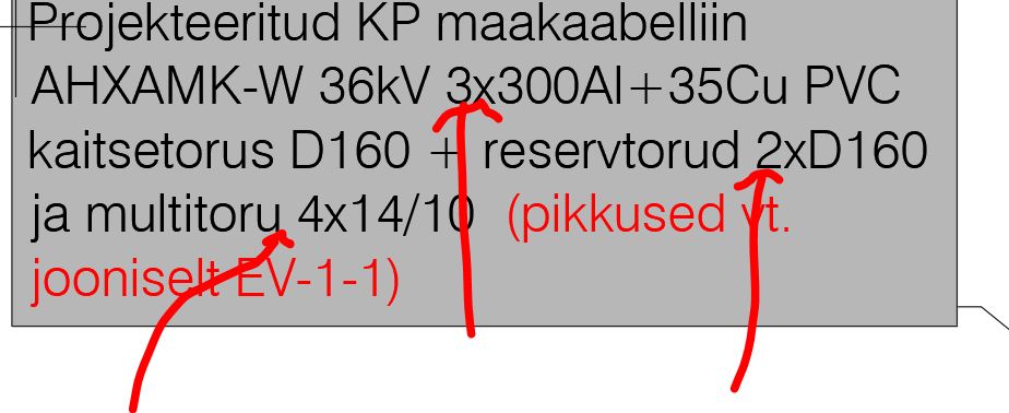 6.Kokku projekti raames paigaldatkse 3 toru D160 ja 1 toru D75. Ainult ühesse D160 torusse paigaldakse KP maakaabelliini, ülejäänud torud paigaldatkse perspektiivse liitumisvõimsuse suurendamiseks. AHXAMK-W 36kV 3x300Al+35Cu on üks neljasooneline kaabel, mitte neli kaablit.