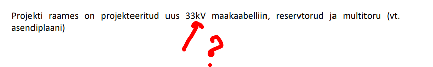 7.Meie paigaldame kaablit, mis hakkab töötama 33kV pingel. 36kV see on kaabli maksimaalne tööpinge, mis on tähistatud kaabli nimetuses.