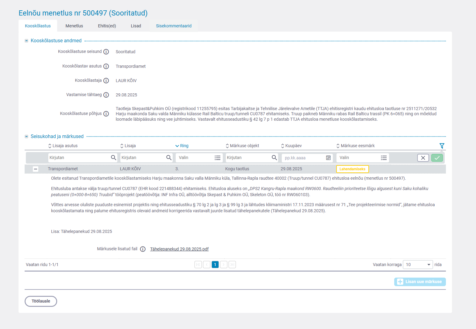 | Dokumendiregister | Transpordiamet |