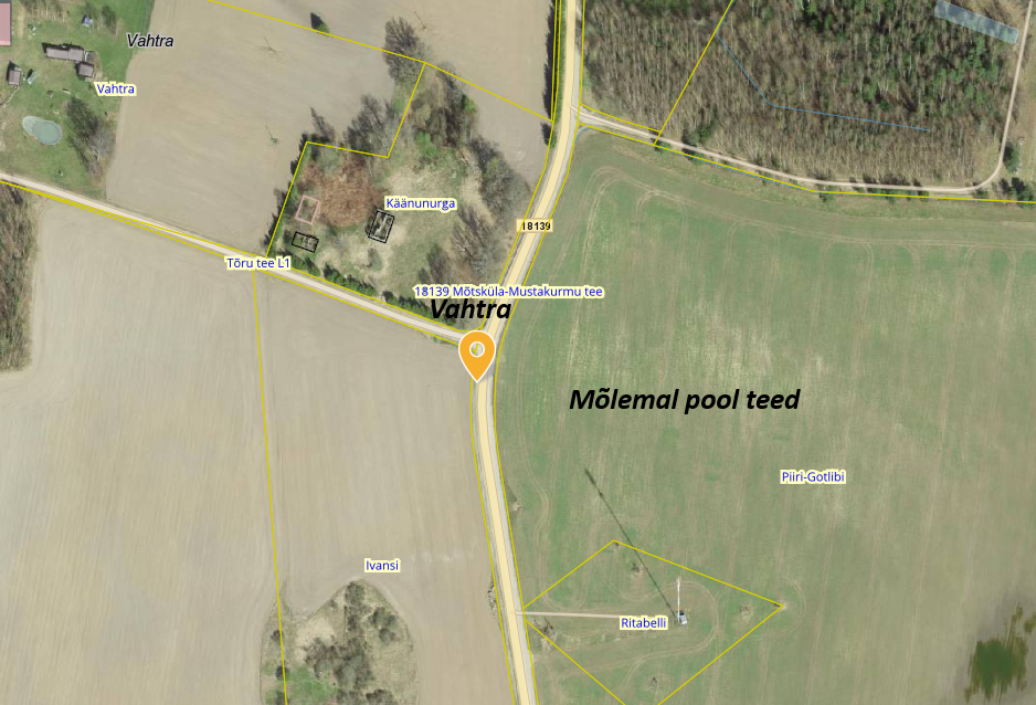 - riigitee nr 18139 km 1,314 (paremal pool) ja km 1,285 (vasakul pool)