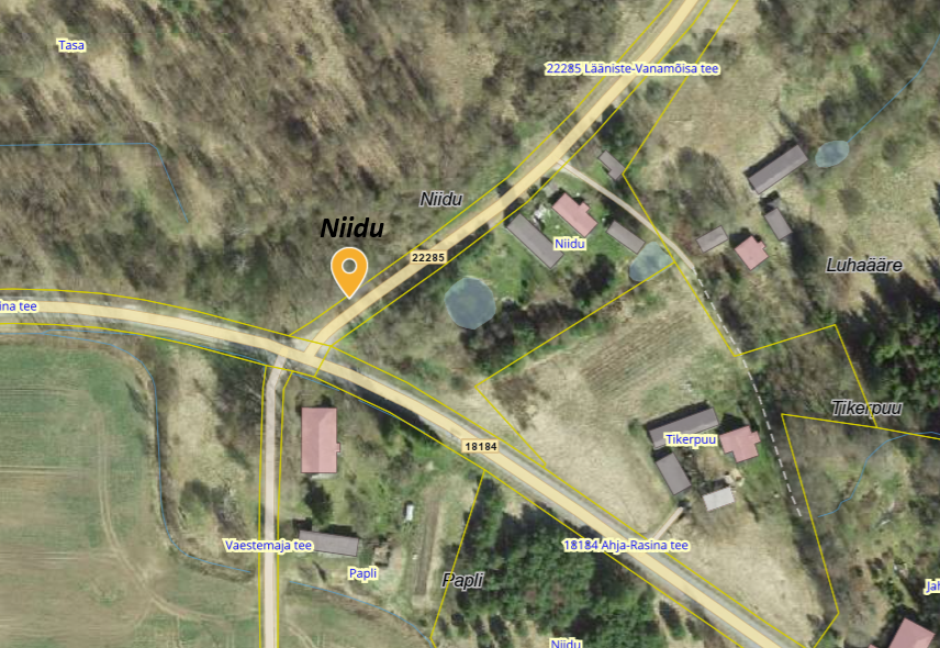 - riigitee nr 22285 km 7,027 (paremal pool) „Niidu“ bussipeatus**;