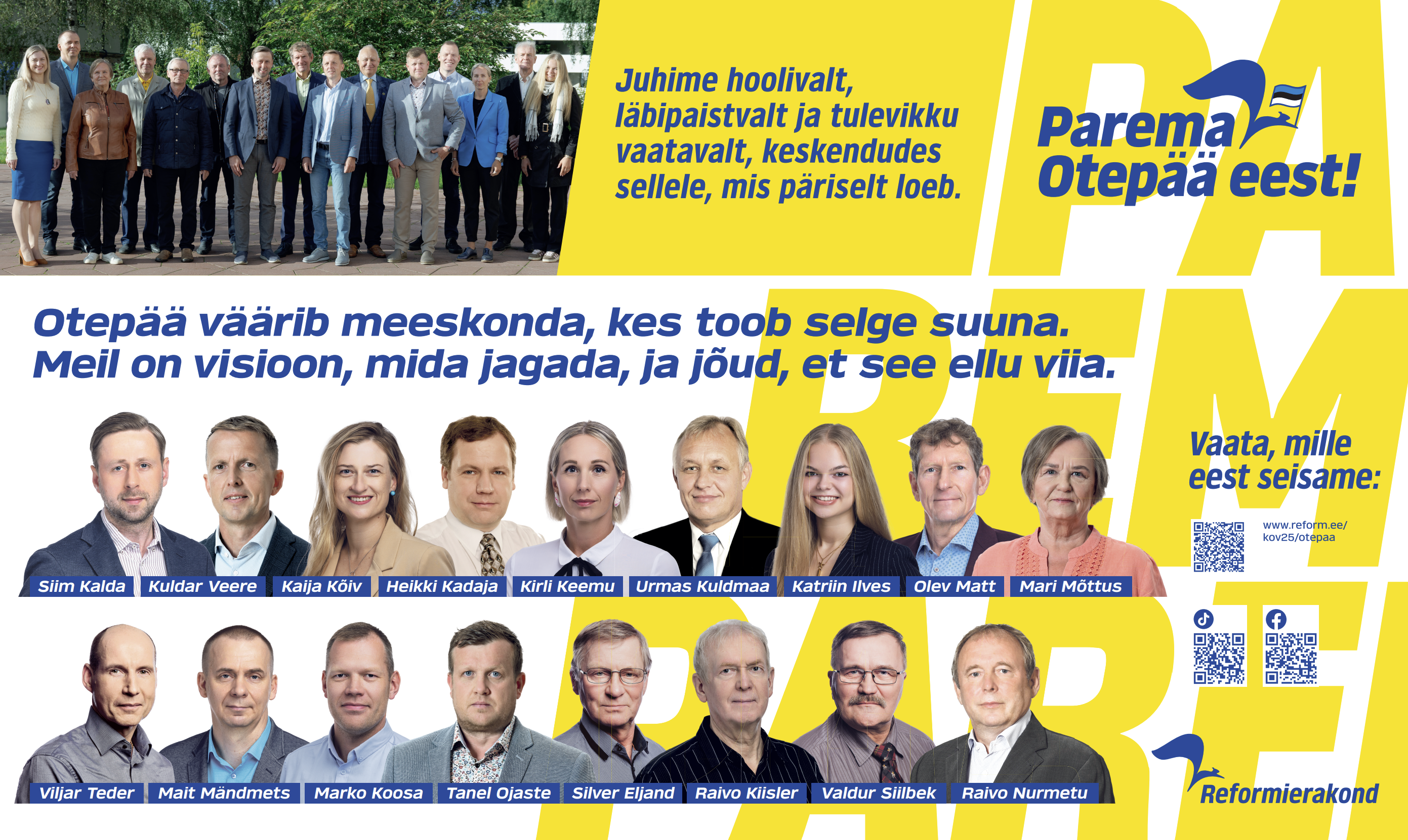 Saadan kirja lisas Liiklusvälise teabevahendi (reklaami) paigaldamise taotluse – Keeni. Ajutine reklaam seoses Kohaliku omavalitsuse volikogu valimistega – 19. oktoobril 2025. Plakati peal on Reformierakonna Otepää valla kandidaatide nimed ja pildid. Näidis on lisatud avaldustega kaasa. Eksponeerimise aeg alates 10.09.2025 kuni 19.10.2025.