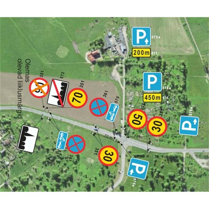 MÄRKUS: Muud olemasolevad liiklusmärgid, mis lähevad vastuollu antud ajutise ehitusaegse liiklusskeemiga, tuleb kinnikatta. Vajadusel lisada objektil täiendavaid liiklusmärke. Ajutised liiklusmärgid tuleb paigaldada nii, et nad on liiklejale üheselt mõistetavad ja arusaadavad.