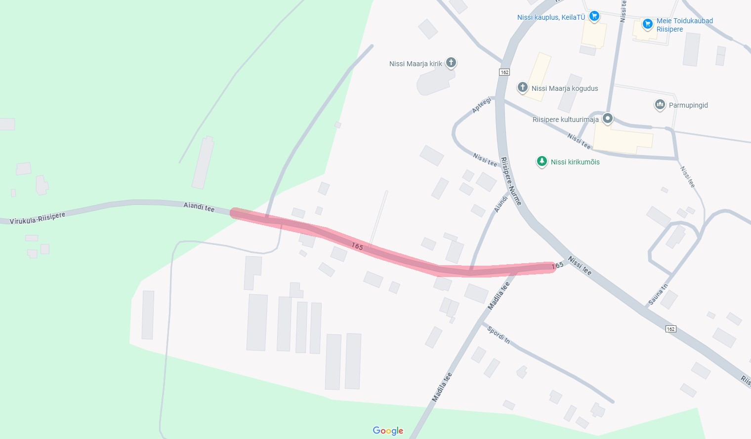 Teeme ettepaneku kehtestada Riisiperes Aiandi tee (Viruküla-Riisipere maantee 11165) Riisipere alevi sisesel lõigul 30 piirangu märgid, kuna sellel alevi sisesel lõigul on riigitee väga kitsas.