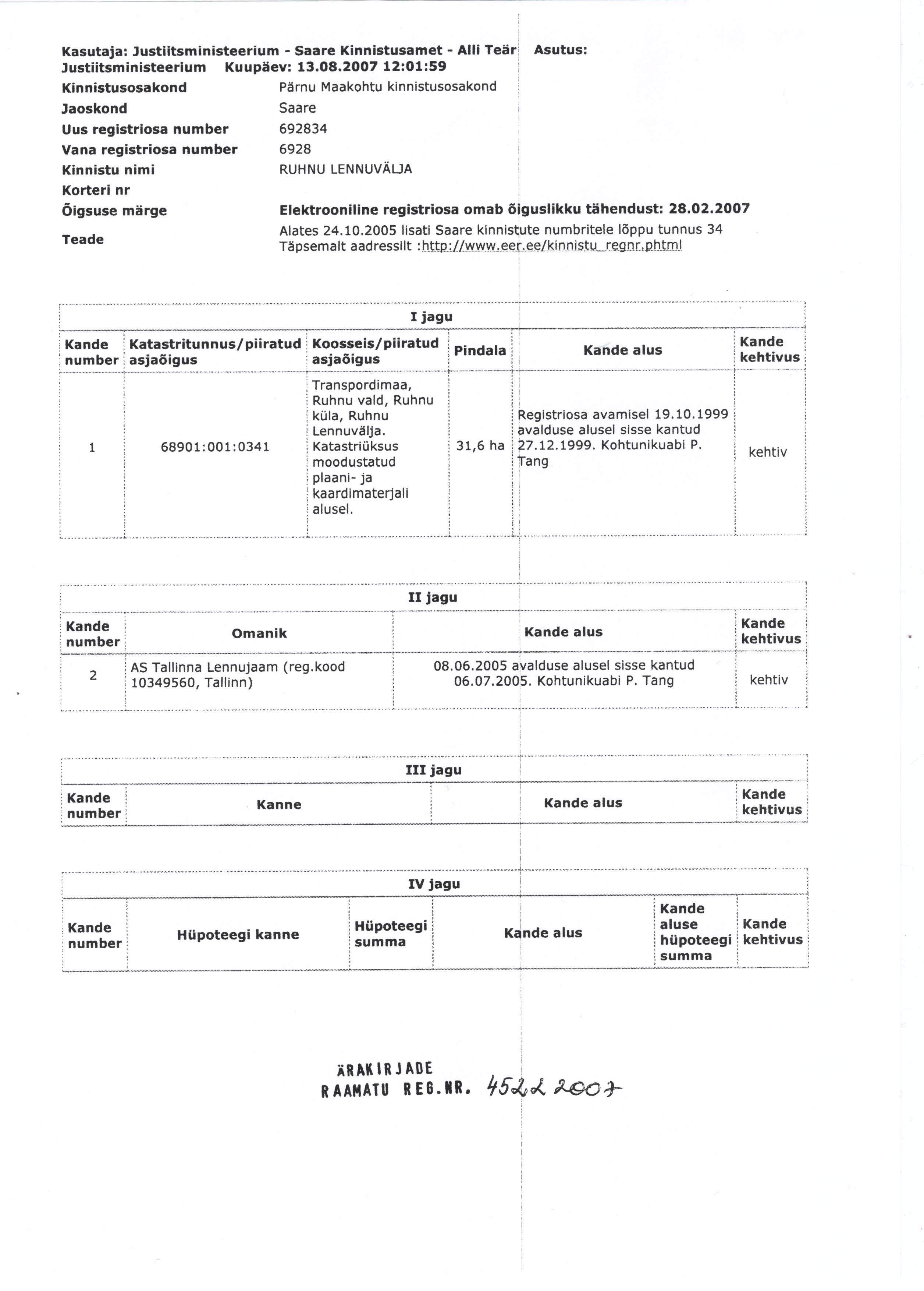 saabumise või väljumise aja. Infovahetuse Ruhnust väljunud õhusõiduki tegelikust