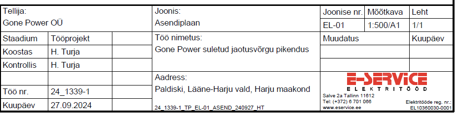 Andres Koppel Stromtec OÜ Koostaja: M1:500 A3Mõõtkava: Kuupäev: 12.08.2025Formaat: