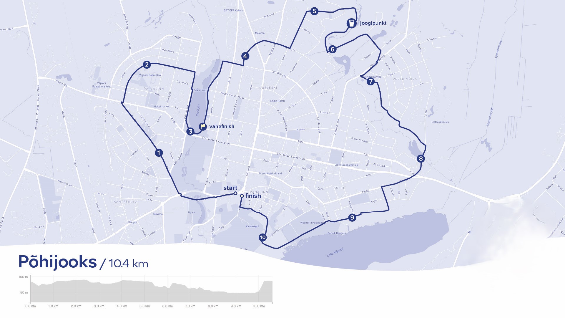 70. Viljandi Linnajooks 12. oktoober 2025 Võistlusjuhend 1.ÜLDIST: 1.1.Viljandi Linnajooks on vanim Eestis korraldatud linnajooks. 2025 aastal võõrustab Viljandi Linnajooks jooksjaid juba 70. korda. 1.2. 70.Viljandi Linnajooksu korraldab MTÜ Viljandimaa Spordiliit koostöös korraldus-ja võistluskomiteega ning sponsorite ja toetajate kaasabil 1.3. 70.Viljandi Linnajooksu start ja finiš asuvad Viljandi kesklinnas, start Spordihoone eest ja finiš Vabaduse platsil. 1.4. 70.Viljandi Linnajooksu rada kulgeb Viljandi linna tänavatel ja teedel. Jooksurada kulgeb peamiselt asfaldi- ja kruusakattega teedel. Jooksurada sobib ideaalselt jooksusõbrale, kes ootab keskmisest raskemat rada, naudib jooksmist linnatänavatel paljude pealtvaatajate ees ning tunneb rõõmu sügisesest tujukast ilmast. 1.5. Võistlusrada on tähistatud suunaviitadega, lintidega ning maha märgitud nooltega. Teed on liikluseks avatud. Ohutuse huvides peavad osavõtjad täitma liikluseeskirju, juhinduma liiklusmärkidest ja liikluse korraldajate märguannetest. 1.6. Põhijooksul on üks vahefiniš ja üks joogipunkt Uueveski basseinide juures. 1.7. Viljandi Linnajooksul ei ole stardikoridore. Stardinumbrite jagamisel arvestatakse Viljandi Linnajooksul 2025 saavutatud kohta eelregistreerumisel hiljemalt 8.oktoober 2025.kell 24.00 1.8.Põhijooksu võistlusraja lõpus on Pika tänav tõus, mille alguses ja lõpus fikseeritakse aeg ning selgub MÄEKUNINGA tiitel. Tiitli võitja peab lõpetama 70.Viljandi Linnajooksu 70.esimese parema hulgas. 1.9. Võistluskeskus asub Viljandi Vabaduse väljakul ning on avatud 12.oktoobril 2025 kella 9.00-14.30 2. AJAKAVA: 2.1.Lastejooksude stardid Viljandi Spordihoone eest algusega kell 10:30. Lastejooksudele registreerimine toimub võistluspäeva hommikul Vabaduse platsil, kella 10.00-10.25. Lastejooksudel saavad osaleda 1.-11.a. lapsed. Lastejooksud on tasuta ning startide ajad selguvad kohapeal olenevalt osalejate arvust. Võistlusstarte alustavad nooremad. Kõigile osavõtjatele antakse number 1 ja see tuleb kinnitada rinnale, riiete peale. Distantside pikkused: 1.-6.aastased- ~350 m 7.-11.aastased- ~700 m Iga raja läbinud laps saab lõpetades kohe diplomi ja šokolaadi medali. 2.2.Rahvajooks – 4,4 km, ühisstart Viljandi Spordihoone eest kell 11.00 Rahvajooksu rada kulgeb mööda põhijooksu raja algust ja seejärel suundub Paala järve otsast mööda Valuoja orgu tagasi ning läbi Lossimägede Vabaduse platsile finišisse Teed on liikluseks avatud. Ohutuse huvides peavad osavõtjad täitma liikluseeskirju, juhinduma liiklusmärkidest ja liikluse korraldajate märguannetest. Finišis fikseeritakse distantsi aeg, kuid paremusjärjestust ei määrata ja võitjaid ei selgitata. Linnajooksu osalusmedal jagatakse igale distantsi läbinud jooksjale. 2.3.Põhijooksu -10,4 km ühisstart Viljandi Spordihoone eest kell 12:00 Põhijooksul on üks vahefiniš ja üks joogipunkt. Jooks kulgeb Ugala eest Paalalinna , Paalal järve äärest Uueveskile, Peetrimõisa, Kösti, mööda Tartu tänavat ja Ranna Puiesteed ja Pika tänava tõusu kaudu Vabaduse platsile. Teed on liikluseks avatud. Ohutuse huvides peavad osavõtjad täitma liikluseeskirju, juhinduma liiklusmärkidest ja liikluse korraldajate märguannetest. 2.4.Kepikõnd- 10,4 km ühisstart Viljandi Spordihoone eest kell 12:00 (jooksjate järel)