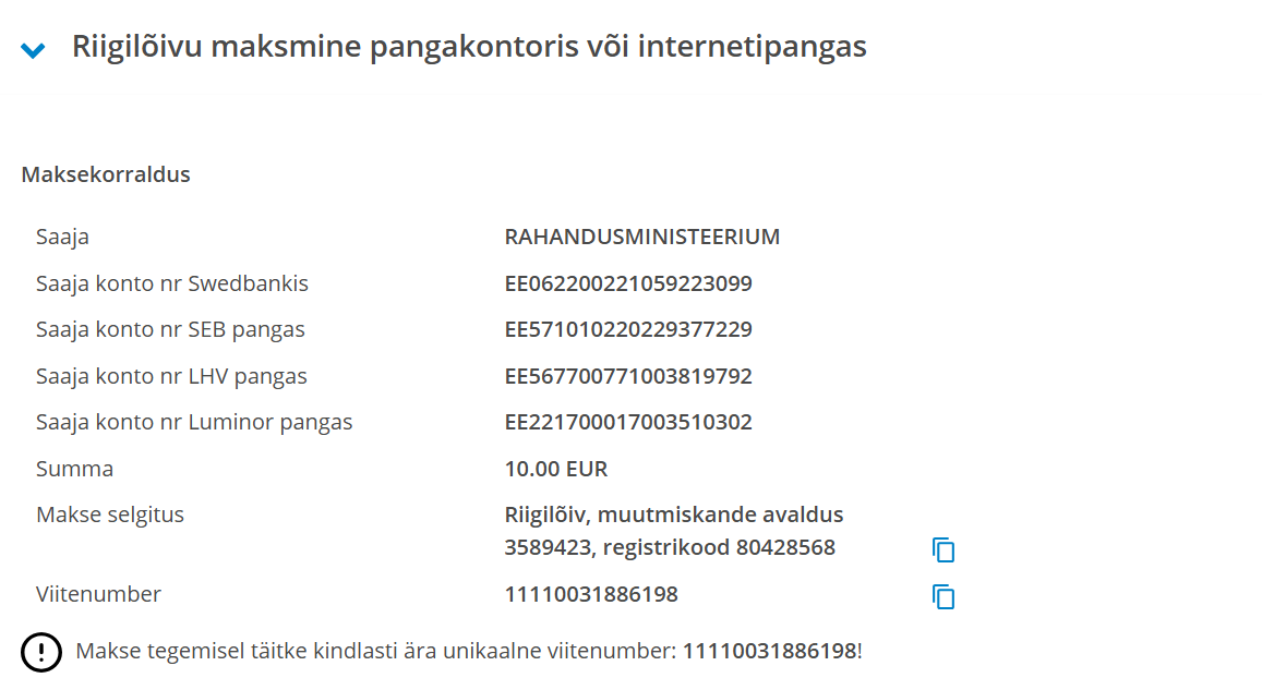 Nimelt oli selgitusse lisatud number (11110031886198) aga kahjuks jäi viitenumbri kohta lisamata.