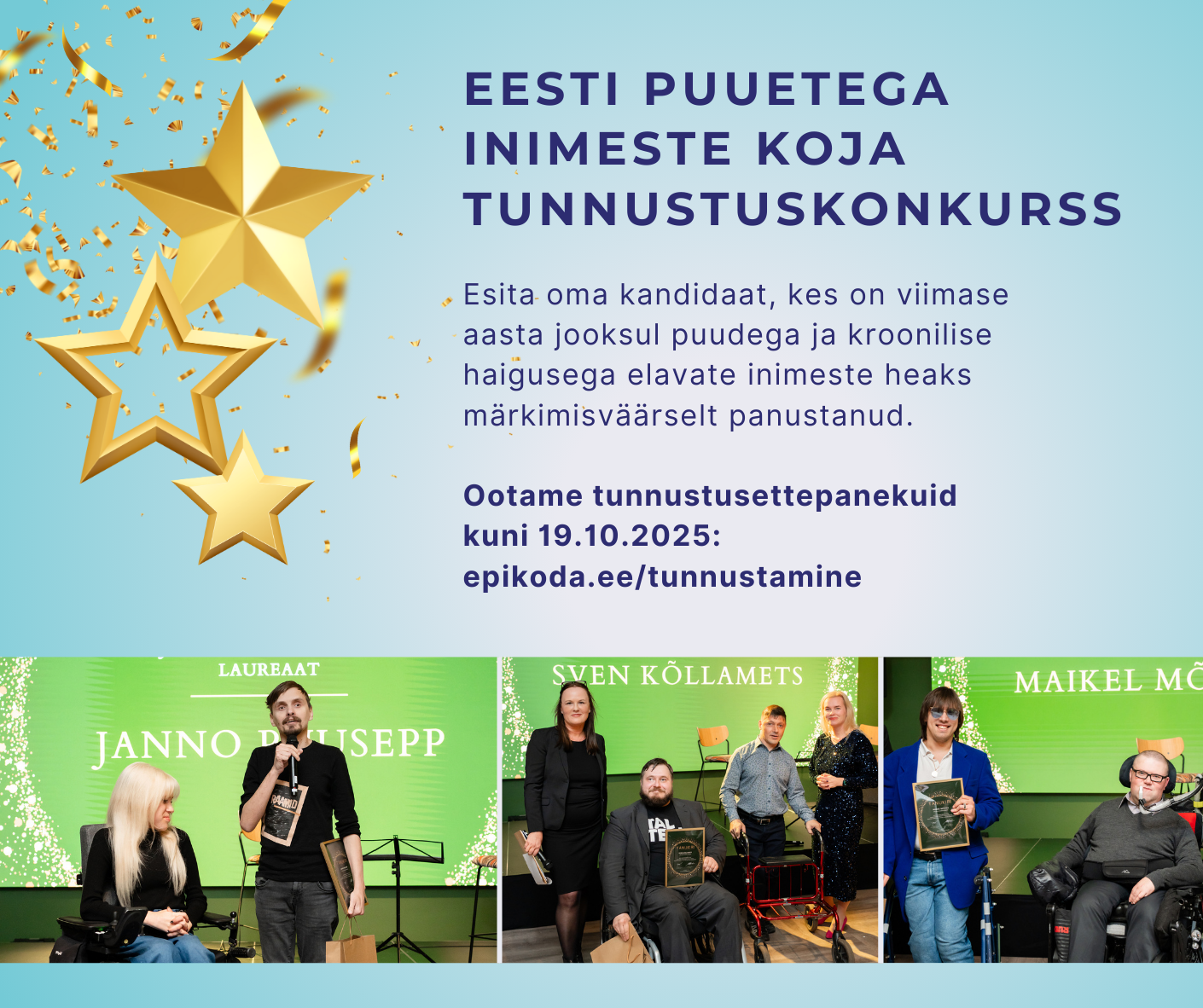 Vaata järele, kes pälvisid tunnustuse 2024. aastal: Selgusid EPIKoja tunnustuskonkursi 2024. a. laureaadid | Eesti Puuetega Inimeste Koda