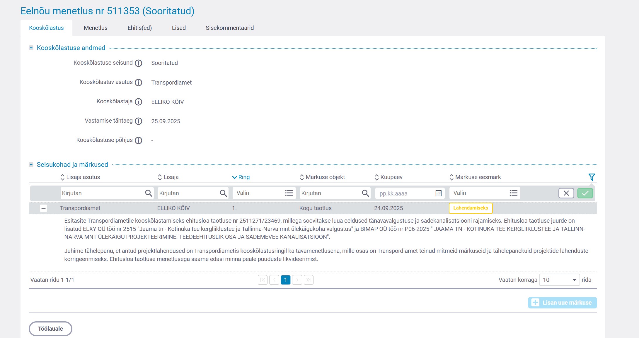 | Vastutaja | Elliko Kõiv (Users, Teehoiuteenistus, Planeerimise osakond, Tehnovõrkude üksus) |