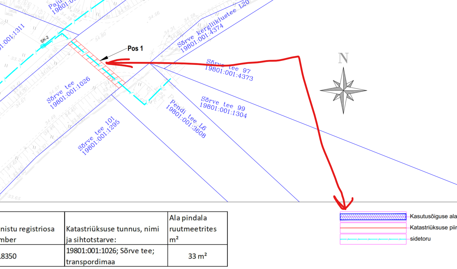 Ristumisel kraaviga tuleb tehnovõrgud rajada TRAM maaüksusel min 1m sügavusel kraavi põhjast. Palume vastav info kajastada asendiplaanil antud asukohas nn noolega kastis.