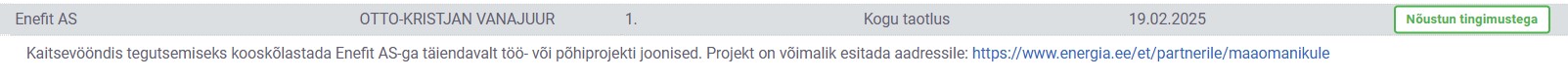 Enefit AS nõustus tingimustega ja andis juhised projekteerimiseks (lisatud).