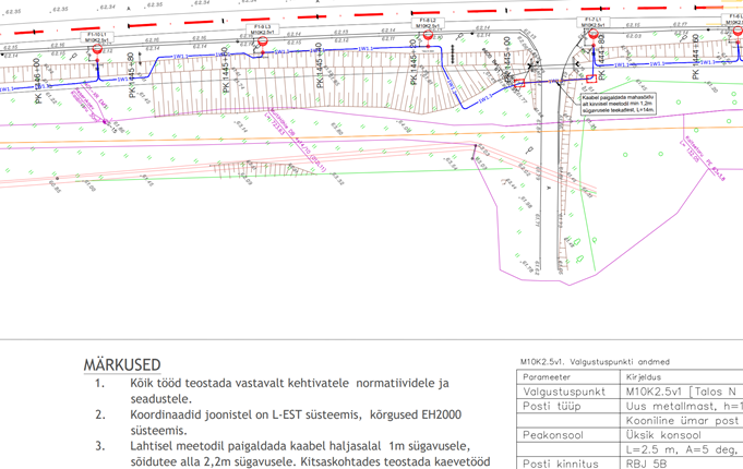- Palun lähtuda ja viidata projekti seletuskirjas, et tehnovõrkude kavandamisel riigiteemaal on lähtutud Transpordiameti juhendist MA 2018-015 „Nõuded tehnovõrkude ja -rajatiste teemaale kavandamisel“ ja valgustuse kavandamisel Transpordiameti käskkirjast 17.05.2024 nr 1.1-1/24/85 „Riigiteede valgustuse kavandamine“.