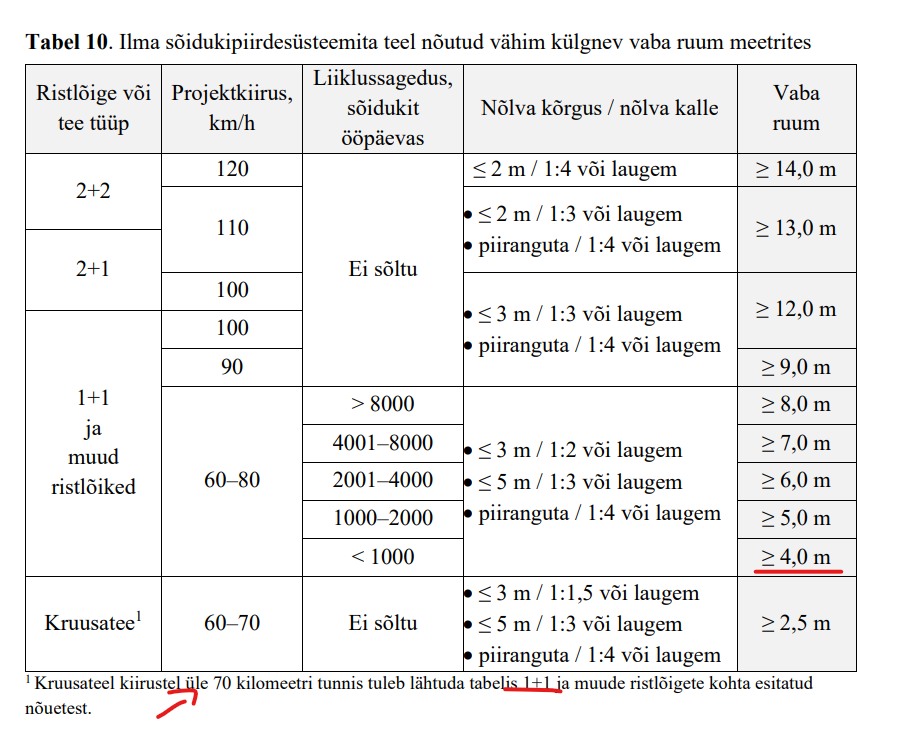 Õnneks või kahjuks seal mullet ei ole. See nõlv, mis joonisel näidatud, on vana karjääri serv ja see tekitabki probleeme, sest asub teele lähemal kui 4m. Kas ma saan Teeregistri kaardist valesti aru, sest mulle tundub, et seal on kiiruspiirang 70km/h? Kaablile on õnneks olemas alternatiive jah, aga probleemiks ongi siis kilp.