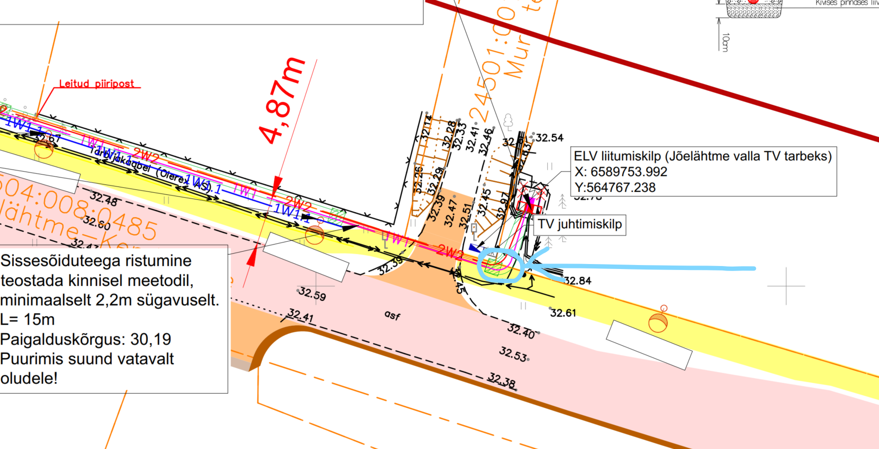 Lisaks palume asendiplaanil kajastada nn lisa ristlõige (A-A) piki teed, kus nähtuks torude omavaheline kaugused ja sügavus sh reservtorude ja kaablikaitsetorude läbimõõt.