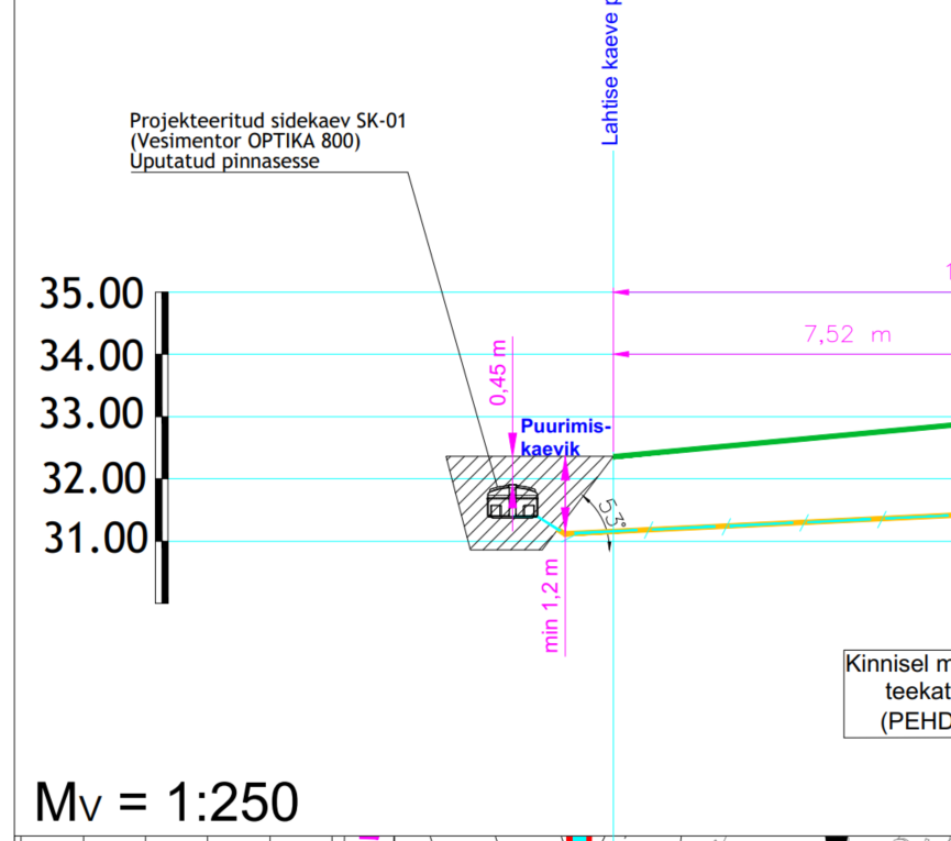 Projekteeritud sidekaev SK-01 (Vesimentor OPTIKA 800) Uputatud pinnasesse 7,1 m