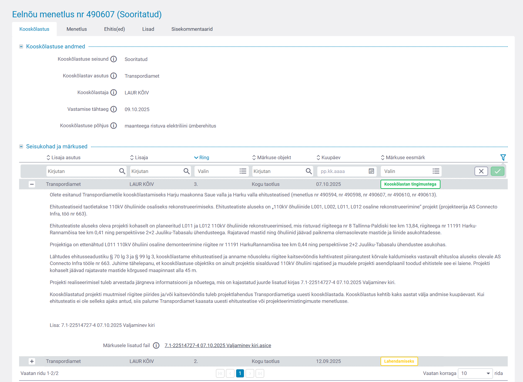 aluseks olevale AS Connecto Infra tööle nr 663. Juhime tähelepanu, et kooskõlastuse objektiks on