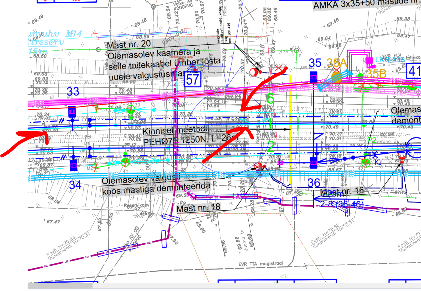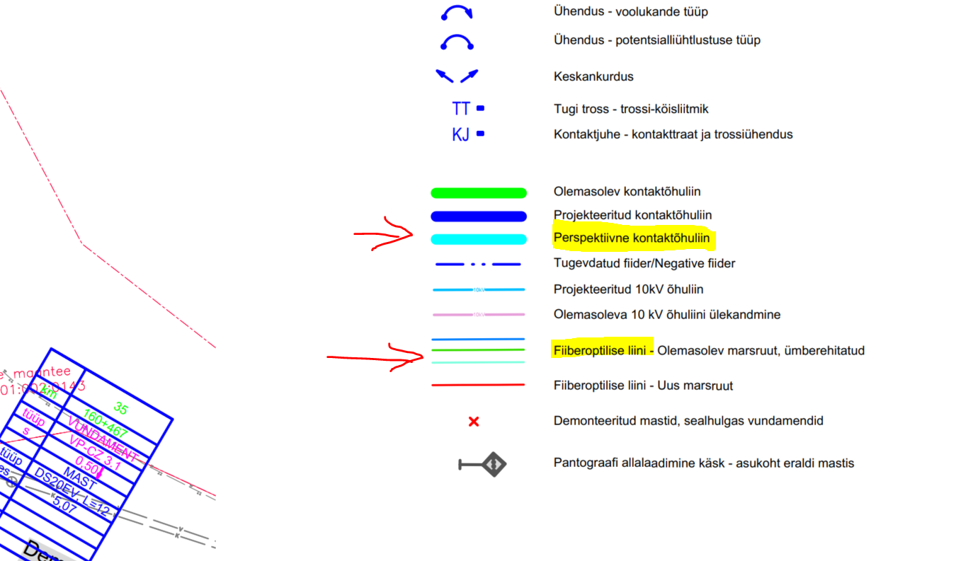 Eelprojektis antud asukohas perspektiivset kontaktliini ei kajastatud. Lisaks on asendiplaanil keeruline tuvastada fiiberoptilise liini ja perspektiivse kontaktõhuliini erinevust (kontuuri värvused samad).