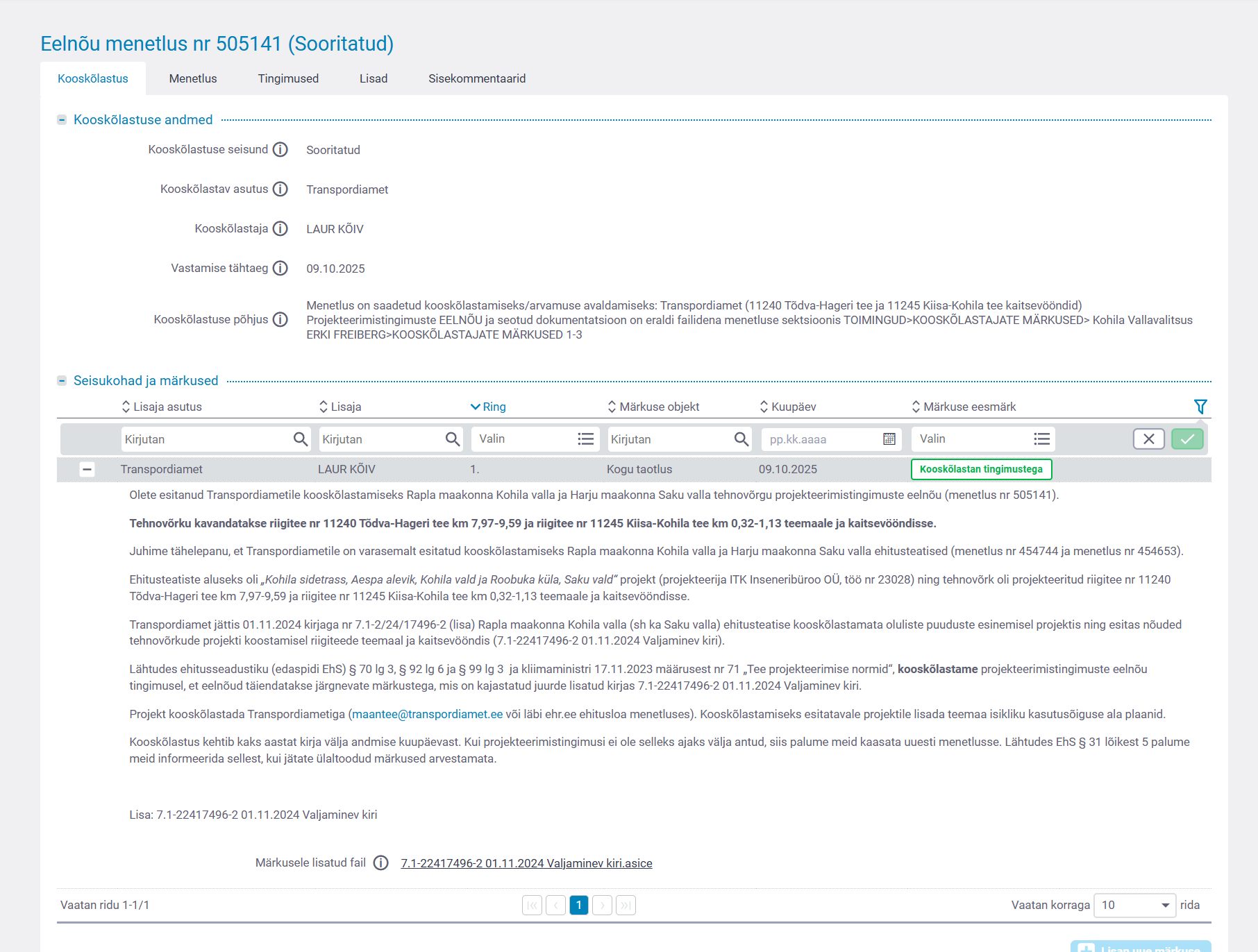 22. Projekt kooskõlastada Transpordiametiga ([email protected] või läbi ehr.ee