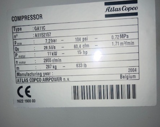 Subject: hinnapäring KATLAS COPCO GA11CFF hoolduseks
