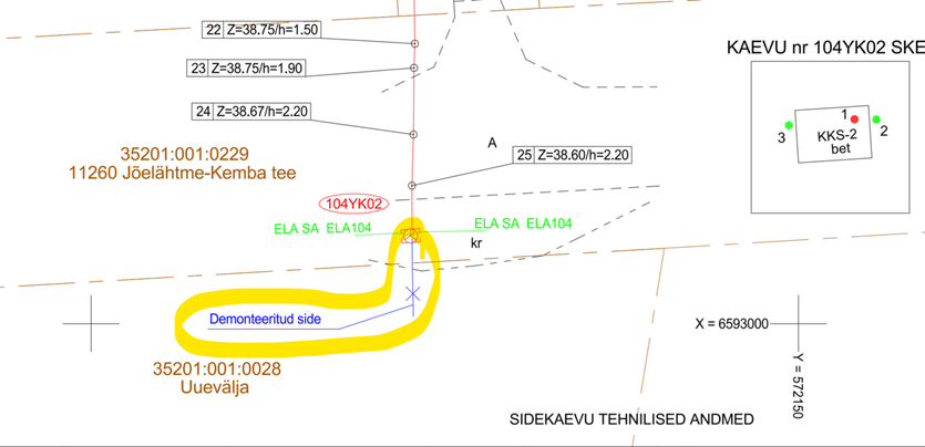 Seega palume esitada materjalides uus IKÕ plaan ainult ELASA sidekaevu osas ning projekti materjalidest eemaldada sidemaakaabli IKÕ plaan (VT1360_pln_35201_001_0229).