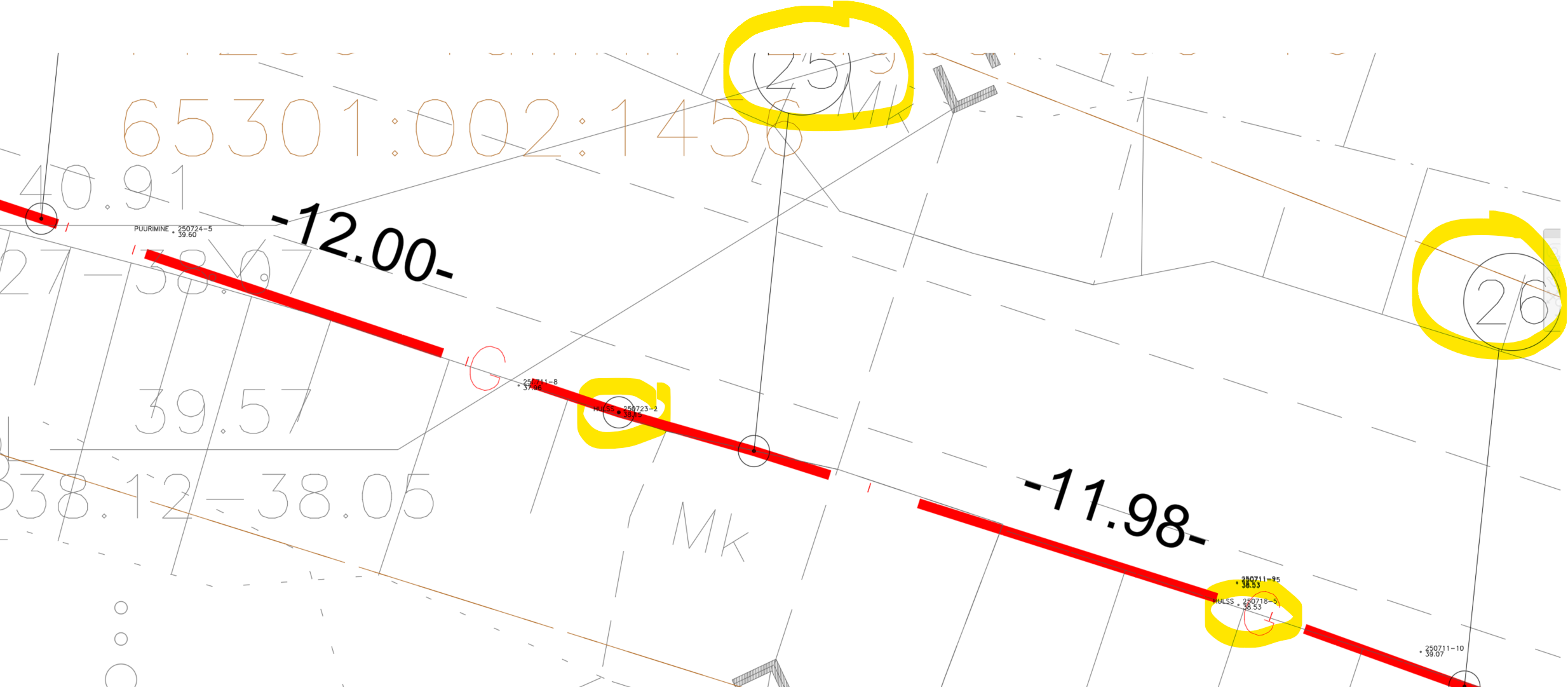 Lisaks ei kajastu esitatud mõõdistuse andmetest vee- ja kanalisatsioontrassi sügavuse andmed.