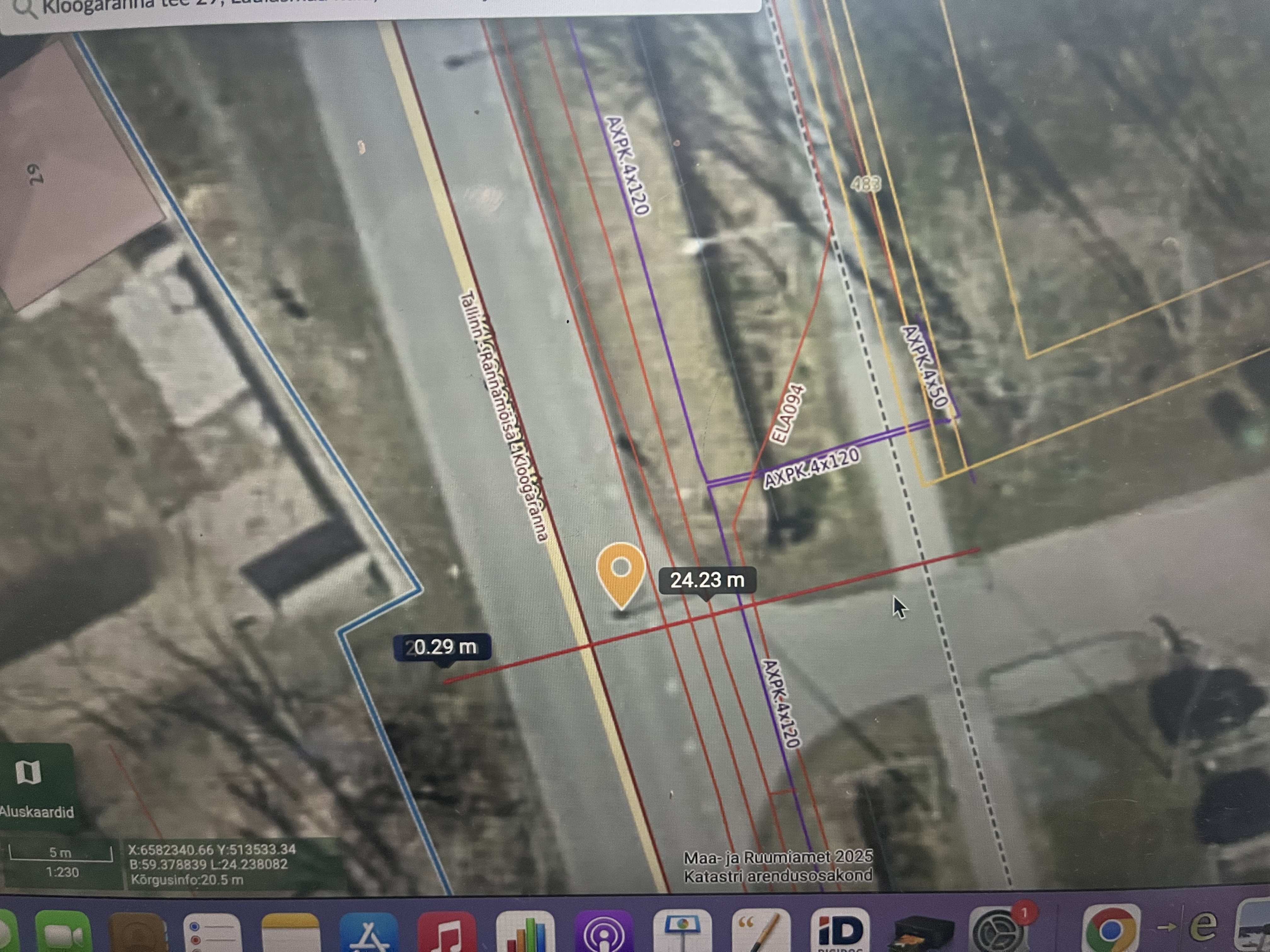Lisatud skeem maa ameti kaardirakenduse kitsenduste kaardil ligikaudu 25 m pikkuse lõigu projekteerimiseks