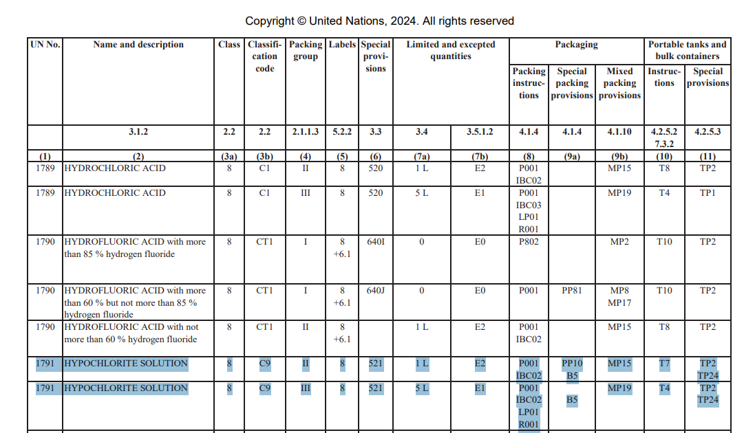 Kuidas peaksime UN 1791 klassifikatsiooni kohalduvust, pakkimisgruppi jt asjakohaseid andmeid 1-3% NaOCl toodetel ohutuskaartidele märkima? Kui märgiksime samamoodi UN 1791, packing group III, hazard class 8, siis tuleks selle põhjal tellida ohtliku kauba vedu, mis ei ole nendele kaupadele vajalik.