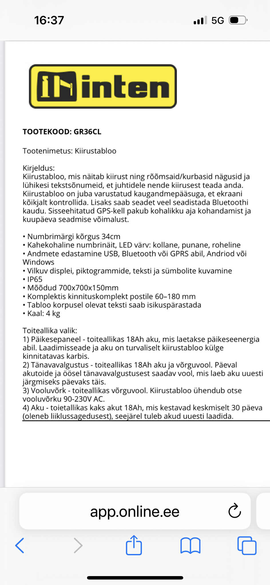 2. Üldised tingimused tabloo paigaldamiseks riigiteele