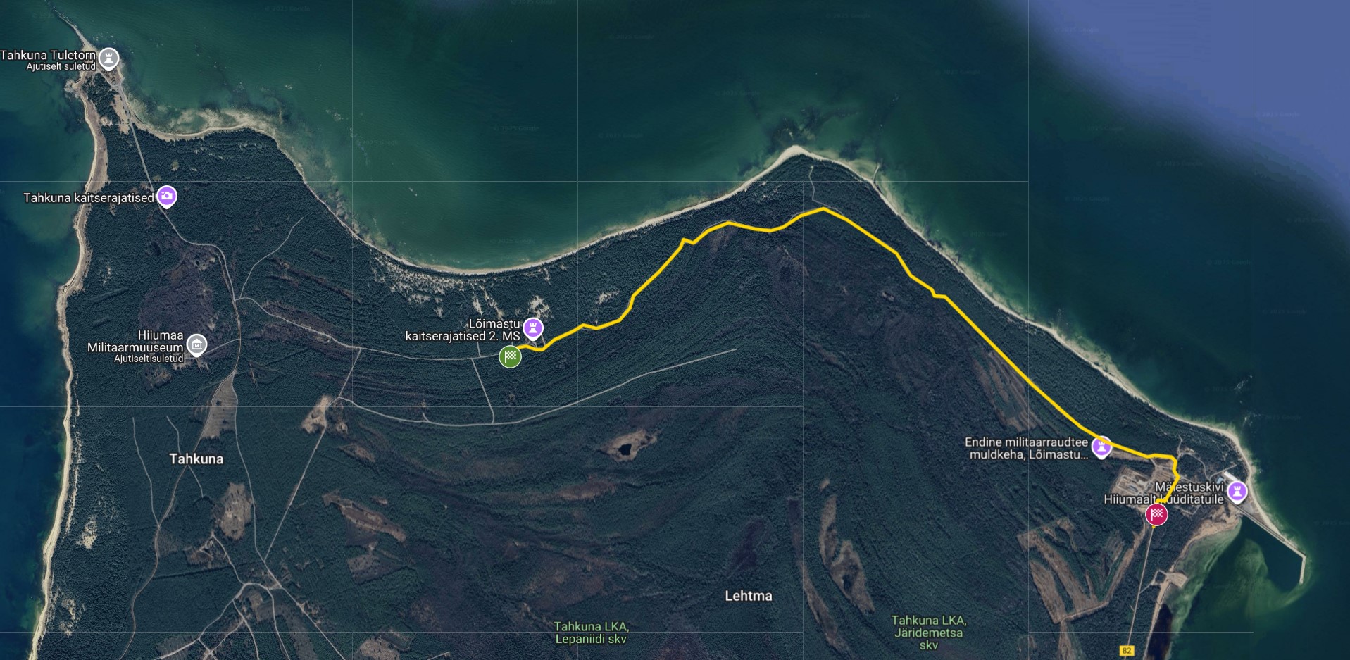 tee (nr 3680016) ca 7 km pikkune lõik, edaspidi ala, kasutamine võistluseks Hiiumaa