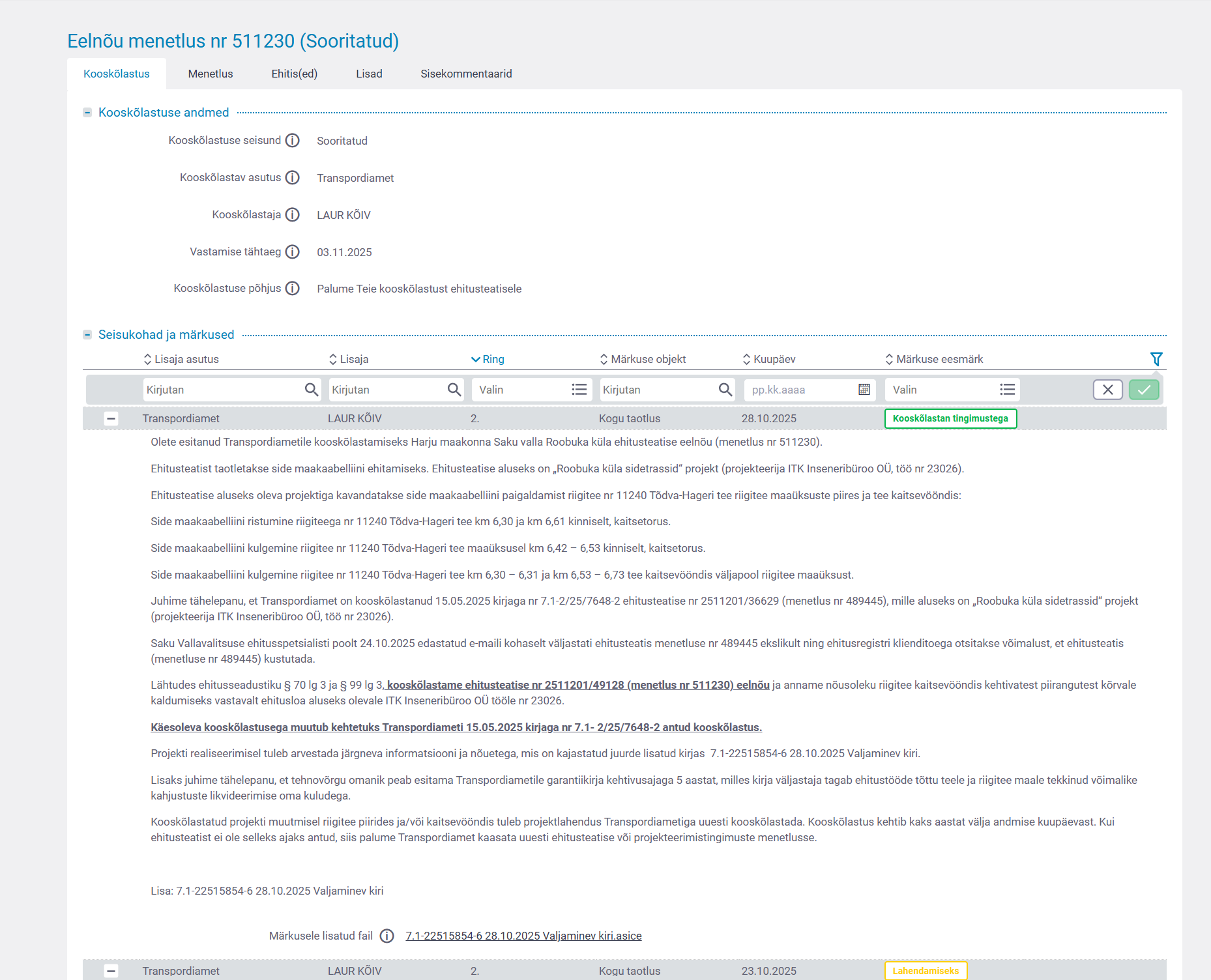 Käesoleva kooskõlastusega muutub kehtetuks Transpordiameti 15.05.2025 kirjaga nr 7.1-