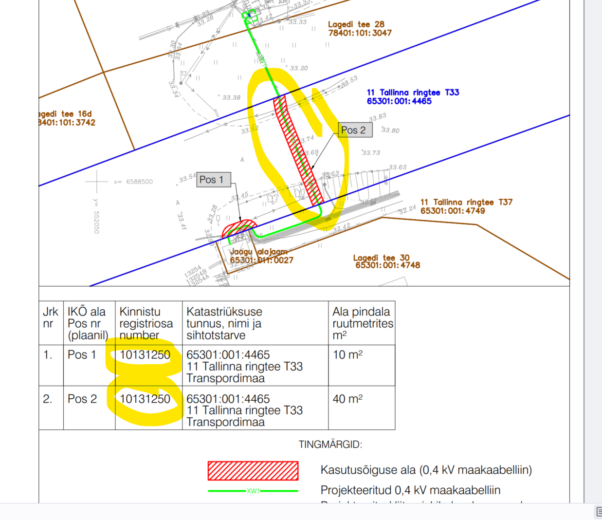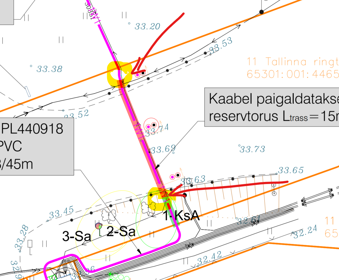 Palume kajastada, et perspektiivsel TRAM maaüksusel (11 Tallinna ringtee T37) projekteeritud kaabel paigaldatakse haljasalal min sügavus 1,0m ja kaitsetoru tugevus 750N.