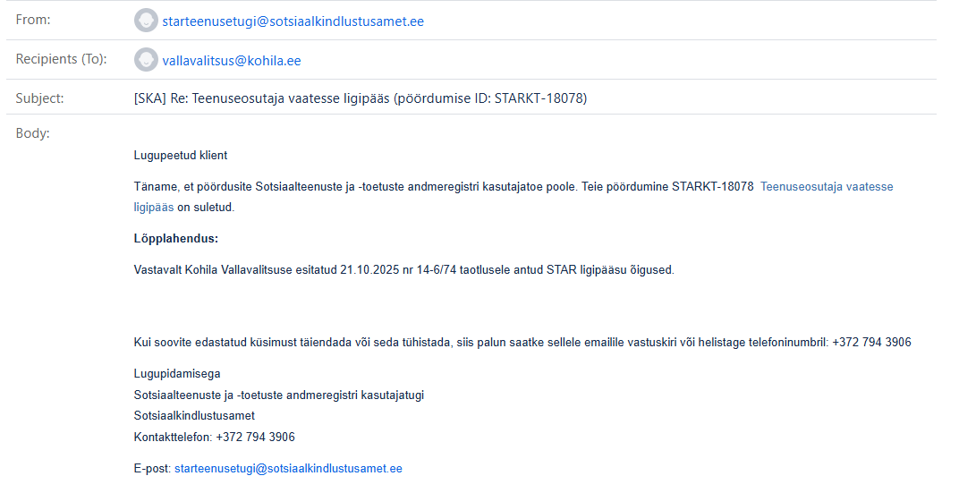 | Saabumis/saatmisviis | Kohila Vallavalitsus |