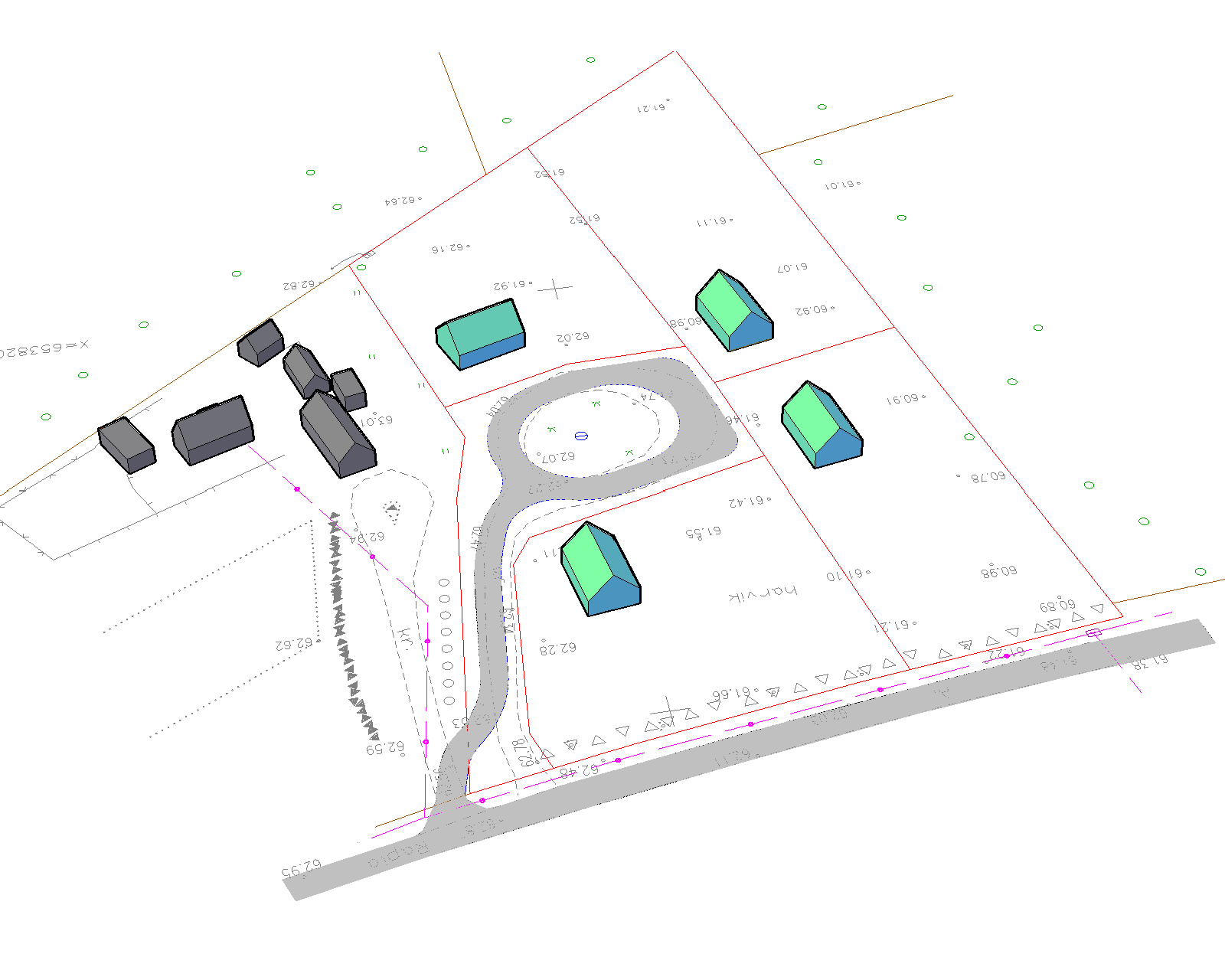 4.2. VIHMAVEEKANALISATSIOON. Lähipiirkonnas puudub sadevee kanalisatsiooni ühistorustik. Hoonete katustelt ja pinnakatetelt juhitakse sadevesi maapinna kalletega hoonest eemale ja on ette nähtud immutada pinnasesse oma krundil. Krundi planeerimisel tuleb vältida sade- ja pinnasevee juhtimine naaberkruntidele ja teemaale. 4.3. ELEKTRIVARUSTUS. Kruntide elektrivarustus lahendatakse vastavalt Elektrilevi OÜ võrgu tehnilistele tingimustele nr 372847 Väljataguse alajaamast olemasoleva Väljataguse alajaama liinilt. Liitumiskilbid paigaldatakse kruntide tänavapoolsele piirile. Iga krundi võrguühenduse maksimaalne läbilaskevõime 3x20A. (vt joonis DP3). 4.4. KÜTE. Kavandatavate üksikelamute kütte- ja soojavee varustus lahendatakse lokaalsete süsteemidega. Alternatiivseks lahenduseks on õhk-vesi soojuspump, lisaks toetav energiavarustus päikeseküttega. Küttelahenduse lõpliku valiku aluseks on tehniline ja majanduslik analüüs. 5. KURITEGEVUSE RISKE VÄHENDAVAD NÕUDED JA TINGIMUSED Kuritegevuse ohjeldamise probleemidele tuleb läheneda kompleksselt, arvestades kohaliku omavalitsuse, ühiskondlike organisatsioonide ja politsei osavõtuga. Lähtuda tuleb kõige kaitsetumate inimrühmade vajadustest. Kuus põhimõtet kuritegevuse ohjeldamiseks: -JÄLGITAVUS- Ala jälgitavus on üks peamisi asjaolusid mis kurjategijaid heidutab. Pole oluline kas ümbruskonda tegelikult jälgitaksegi, tähtis on luua niisugune ümbrus, mis paneks sissetungija tunnetama, et ta on kõigile nähtav. -NAABRUSKONNAD- Ala jälgitavuse põhimõtet rakendades peab arvestama vaadeldava piirkonna lähiümbrust. See tähendab et inimesed tunnistavad ala omaks ja jälgivad seal toimuvat. -AVALIKUD ALAD JA ERAVALDUSED- Avalike alade ja eravalduste probleem on tihedalt seotud naabruskondade probleemidega ning keskendub avalike alade ja eravalduste eristamise vajadusele. -VARJUMISKOHAD- Selle põhimõtte järgi on oluline kõrvaldada võimalikud varjumiskohad. Hoonete projekteerimisel tuleb niisuguste kohtade tekkimist vältida, enne ümberprojekteerimist tuleb need välja selgitada ja võimalust mööda kõrvaldada. -ABINÕUDE KOMPLEKSSUSE PÕHIMÕTE- Turvalisus tuleb tagada mitmete abinõude kooskasutamisega. Projektid tuleb igakülgselt läbi
