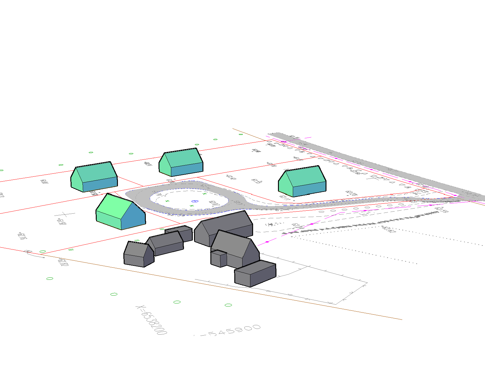 Juurdesõidutee transpordimaa lõpus on tupik, kus on ette nähtud manööverdusala ringtee kujul. Juurdepääsud ja juurdesõidud kavandatavatele kruntidele nähakse ette planeeritavalt transpordimaalt. Parkimine on ette nähtud oma kruntidel. Iga krundil tuleb võimaldada vähemalt 3 sõiduauto parkimine. (vt joonis DP3). 3.5. PIIRANGUD. Ehitusjoon kruntide tänavapoolsetel külgedel on 5 m. Naaberkruntide vahelised kujad on 8 m (4+4m). Põhjapoolsetel kruntidel (pos nr 1 ja 2) on riigitee kaitsevöönd 30 m, millega on hoonestusala kavandamisel ka arvestatud. (vt joonis DP3). 3.6. HALJASTUS, KESKKONNAKAITSE. Elamukruntide haljastus lahendatakse ehitusprojekti eriosaga. Arvestada tuleb naabriõigusi, müra ja tolmu kaitse abinõusid, valdavaid tuultesuundi, ilmakaari jms. Olmejäätmete käitlemiseks sõlmitakse leping Rapla valla prügikäitlusfirmaga. Liigiti kogutavad jäätmed, kartong ja papp ning ohtlikud jäätmed antakse ära jäätmejaamas. Ehitusjäätmete äraveoks tellitakse eraldi konteiner. Krundil on puid ja võsa, millest väärtuslikum osa on soovitatav alles jätta kavandatava haljastuslahendus algatuseks. Planeeritaval alal on ette nähtud ühisveevärk. Kanalisatsioon lahendatakse igal krundil lokaalsete süsteemidega. (vt joonis DP3). 4. TEHNOVARUSTUS. Maa-ala läbivate trasside maakasutuse põhimõttelise lahenduse aluseks on ET-1 0315-0219. 4.1. VEEVARUSTUS JA KANALISATSIOON. Elamukruntide veevarustus lahendatakse transpordimaale rajatud puurkaevu baasil. Veevarustuseks on reserveeritud maa-ala alates puurkaevust kuni kinnistupiirini. Ühisveevärgi edasisel projekteerimisel arvestada kehtivaid ehitus- ja projekteerimisnorme. Elamukruntide kanalisatsioon lahendatakse lokaalsete süsteemidega äraveoga sertifitseeritud kogumismahutitest. Kavandatav vooluhulk tarbeveele ja kanalisatsioonile on 3,2 m³/ööpäevas. (vt joonis DP3).