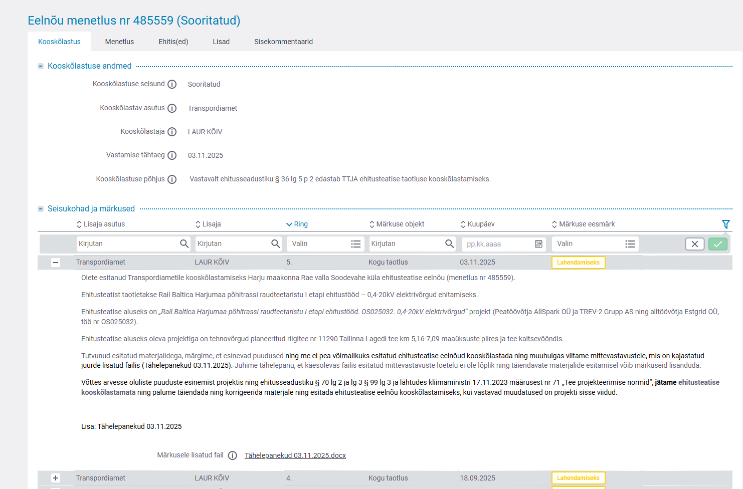 Tähelepanekud 03.11.2025