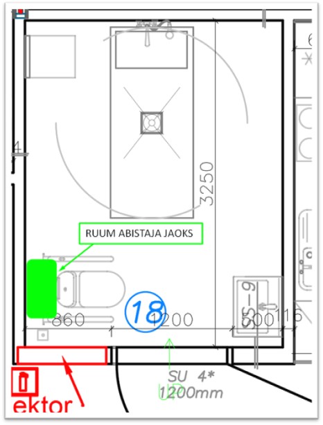 Praegune TP lahendus, kus inva WC-poti taga on ette nähtud 30 cm ruumi abistaja jaoks, sai 21.04.2025 Terviseametiga kooskõlastatud.