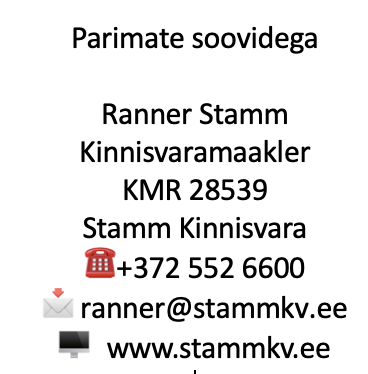 | Saabumis/saatmisviis | Stamm Kinnisvara |