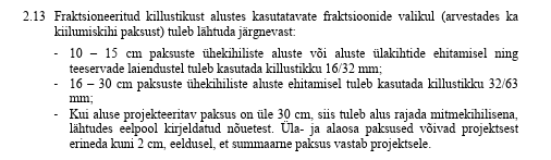 Paraku on manusesse lisatud projekti muudatuses kasutatud killustikku fr 16/32, mis on varasema kokkuleppega vastuolus. Vajab selgitamist.