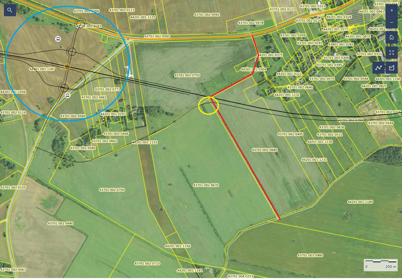 Kas minu joonisel kollase ringiga tähistatud piirkonnas ristuvad esmase eskiisi kohaselt kogujatee ja meie kavandatav juurdepääsutee? Kui see nii on, siis eeldame, et tulevikus on võimalik sealt suunas liikuda ka lõuna poole.